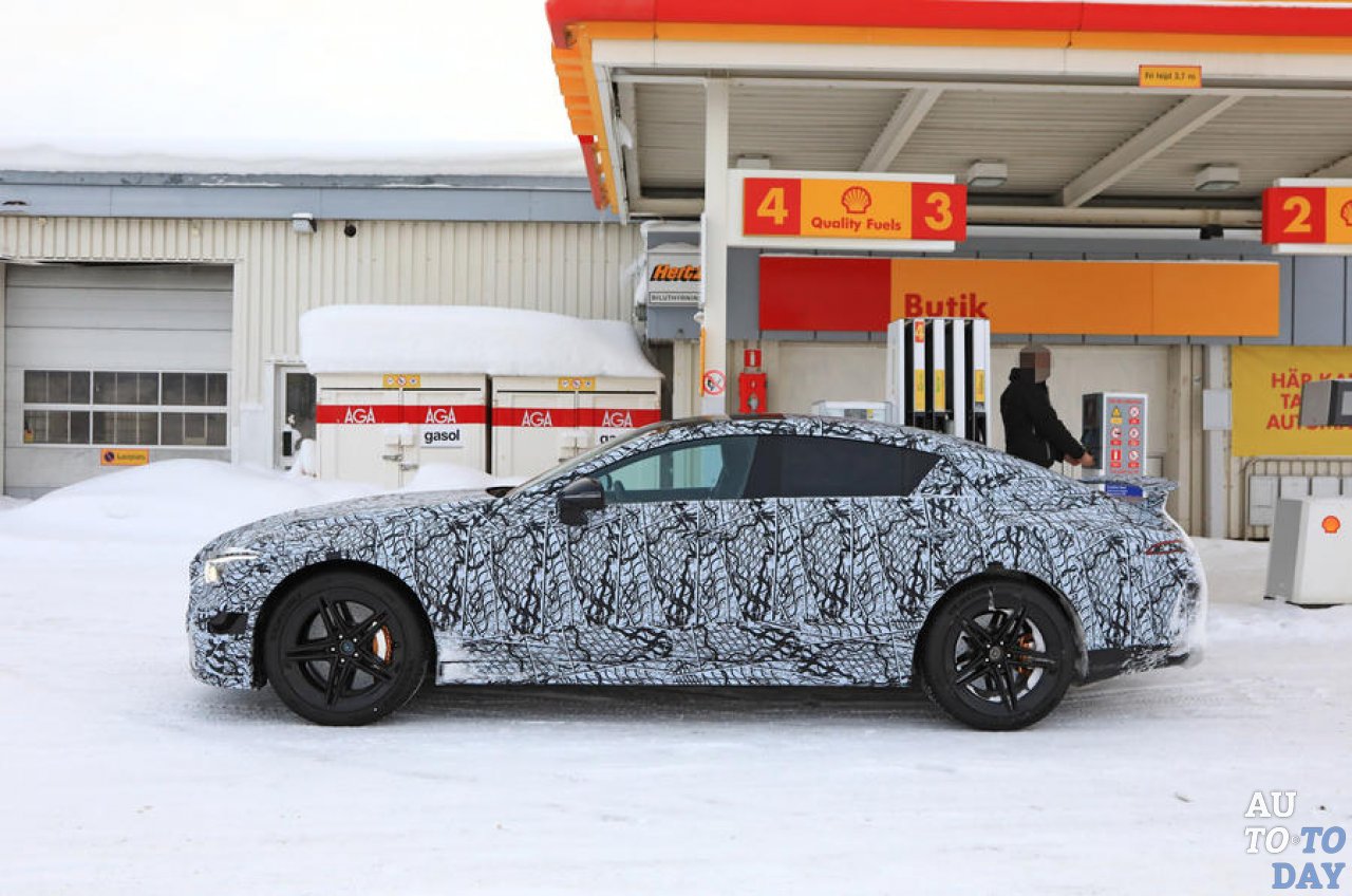 Mercedes-AMG выпустила первые официальные тестовые фотографии своей будущей четырехдверной модели GT, которая должна быть полностью раскрыта на автосалоне в Женеве в марте.