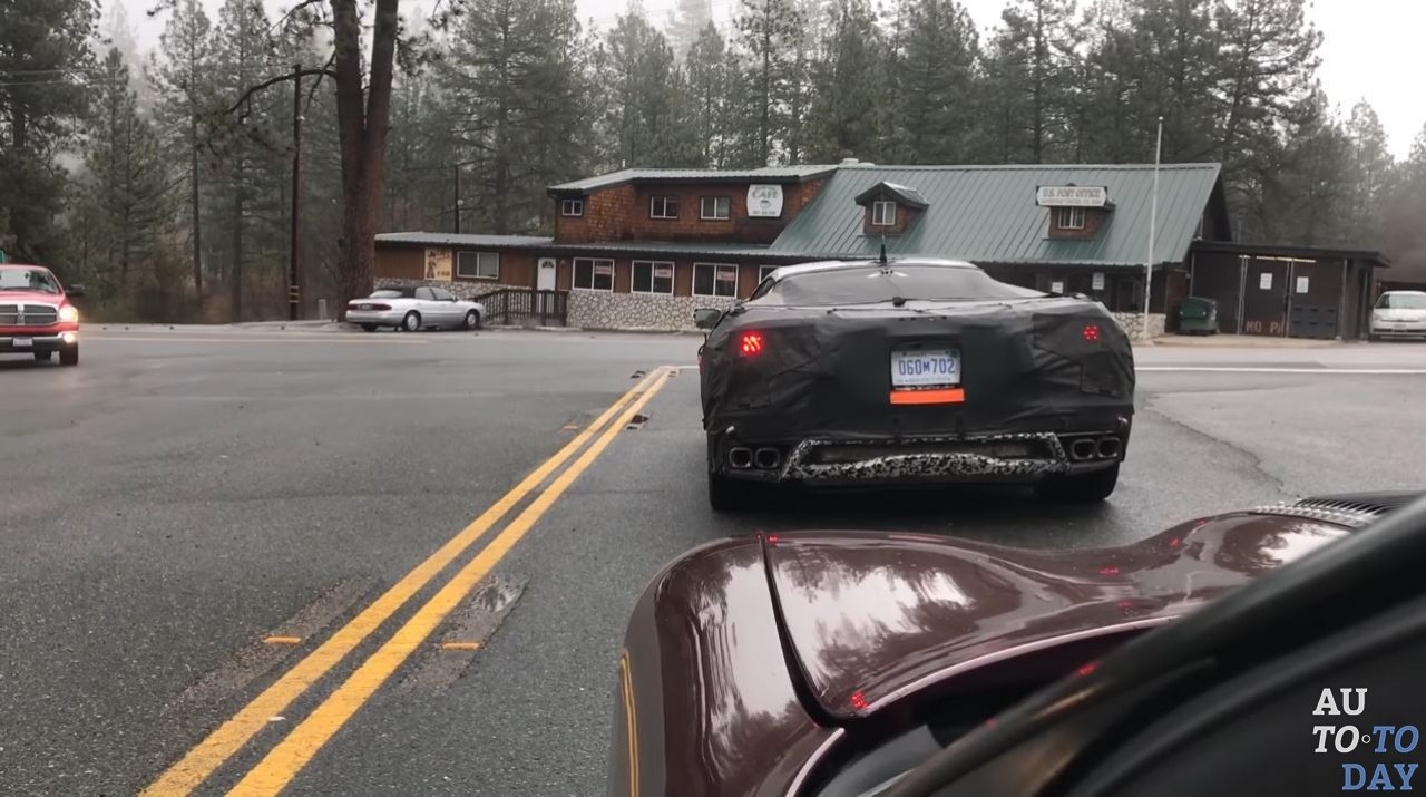 Один из пользователей Corvetteforum поделился несколькими фото- и видеофайлами, на которых запечатлены прототипы С8, проходящие испытания в Калифорнии. Также он рассказал, что, передвигаясь на своей модификации С5 ему удалось перехватить сразу четыре хорошо замаскированных Corvette C8. Несмотря на плотный слой камуфляжа, опубликованные снимки позволяют рассмотреть некоторые особенности в виде квадратных выхлопных труб, плоской крышки двигателя и небольшого заднего окна между подголовниками.