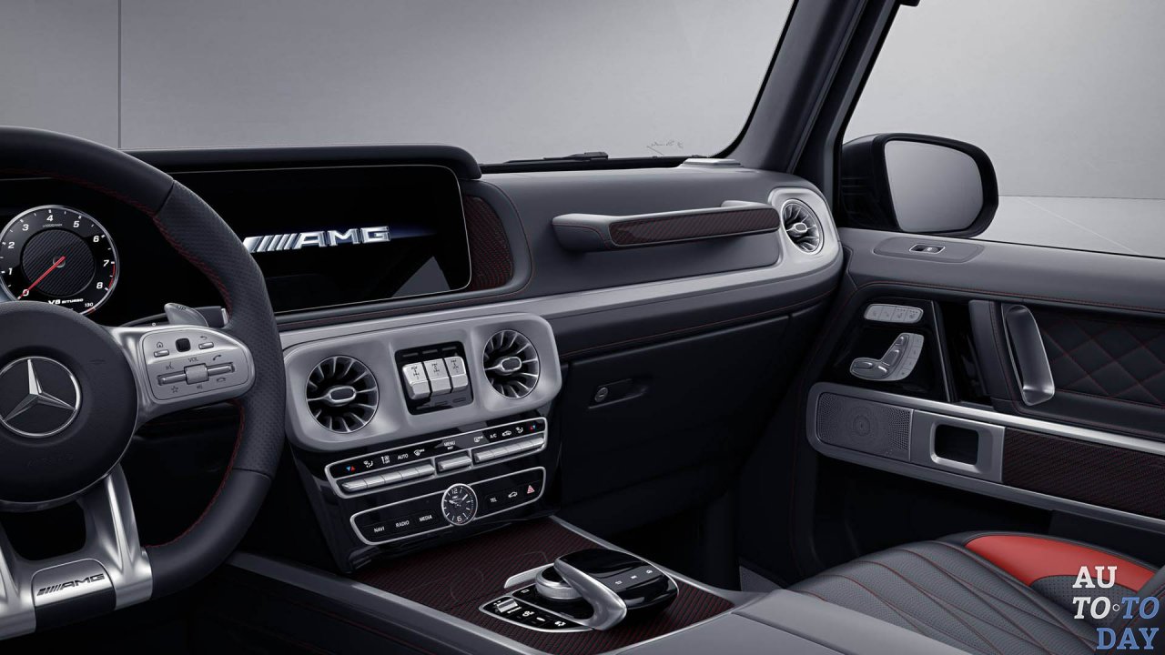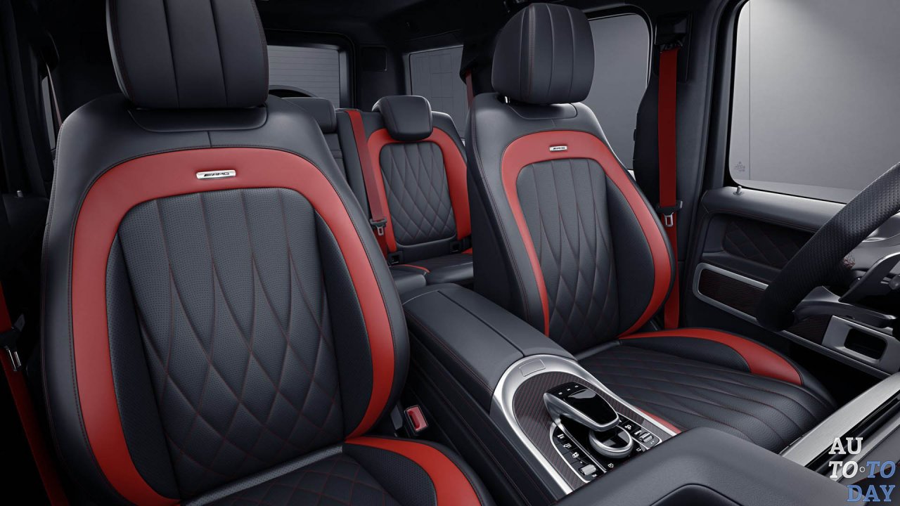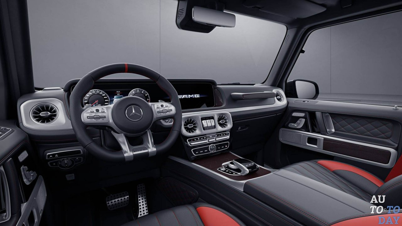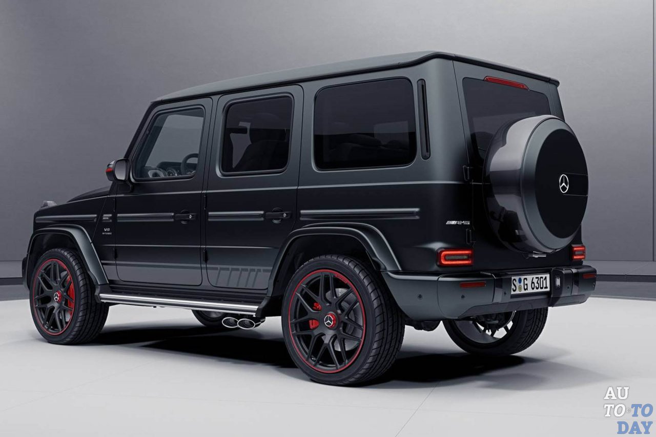 Дебютная версия нового внедорожника G63 Edition 1 выполнена изнутри и снаружи черным цветом с красными акцентами. Эта стратегия начинается снаружи, где Edition 1 имеет матовый черный кузов с темно-серой графикой внизу.