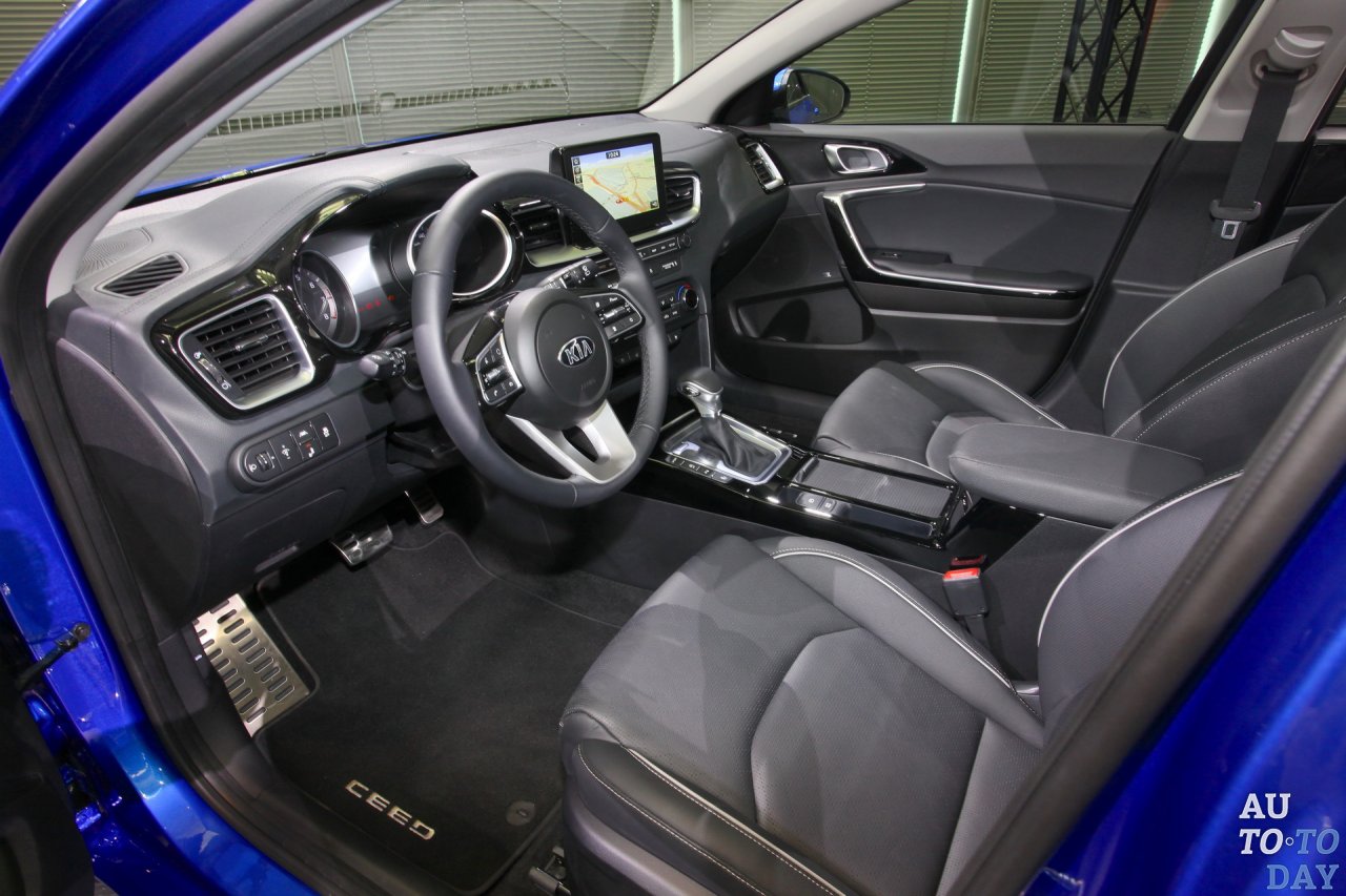 В салоне Kia Ceed 2018 модельного года появилась более качественная отделка с интересными деталями, «плавающая» информационно-развлекательная система, а также металлические или хромированные элементы. Клиентам будет предложено выбрать реализацию салона: тканевой, из кожзаменителя, или натуральной кожи.