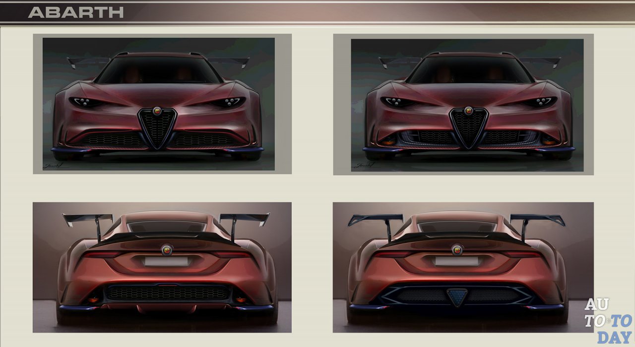 Однако то, как дизайнер Хашаяр Джениби начал создавать представленную концепцию состояло сразу из двух этапов. В первую очередь он полностью переработал 4C, а затем взял получившееся рендерное изображение и реализовал версию Abarth. Задняя часть транспортного средства получила достаточно оригинальный внешний вид, с некоторыми элементами от Giulia, в то время как передняя – позаимствовала множество моментов от гиперкара Bugatti Chiron. Также концепция была дополнена двухкомпонентным задним крылом, новыми воздухозаборниками, а на электрифицированной версии – специальной крышкой, закрывающей выхлопную трубу.