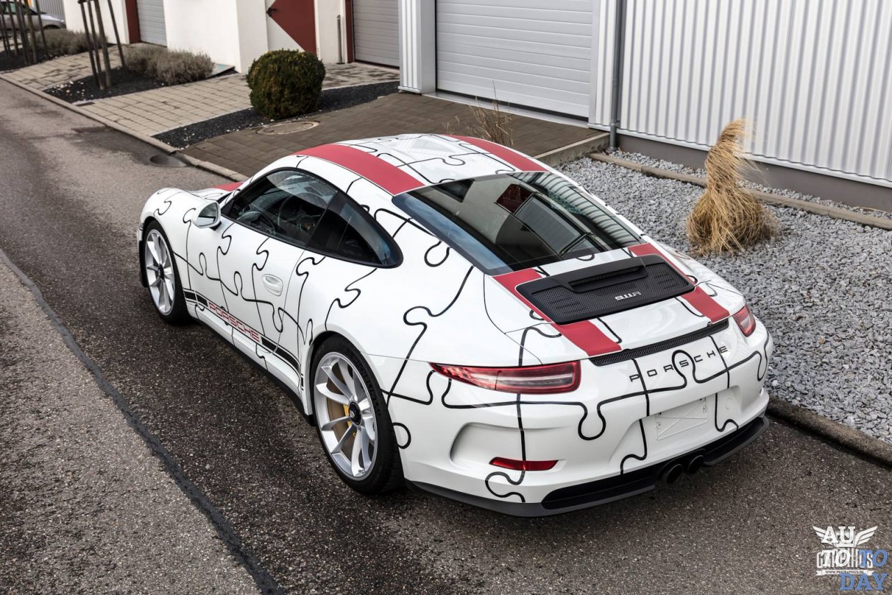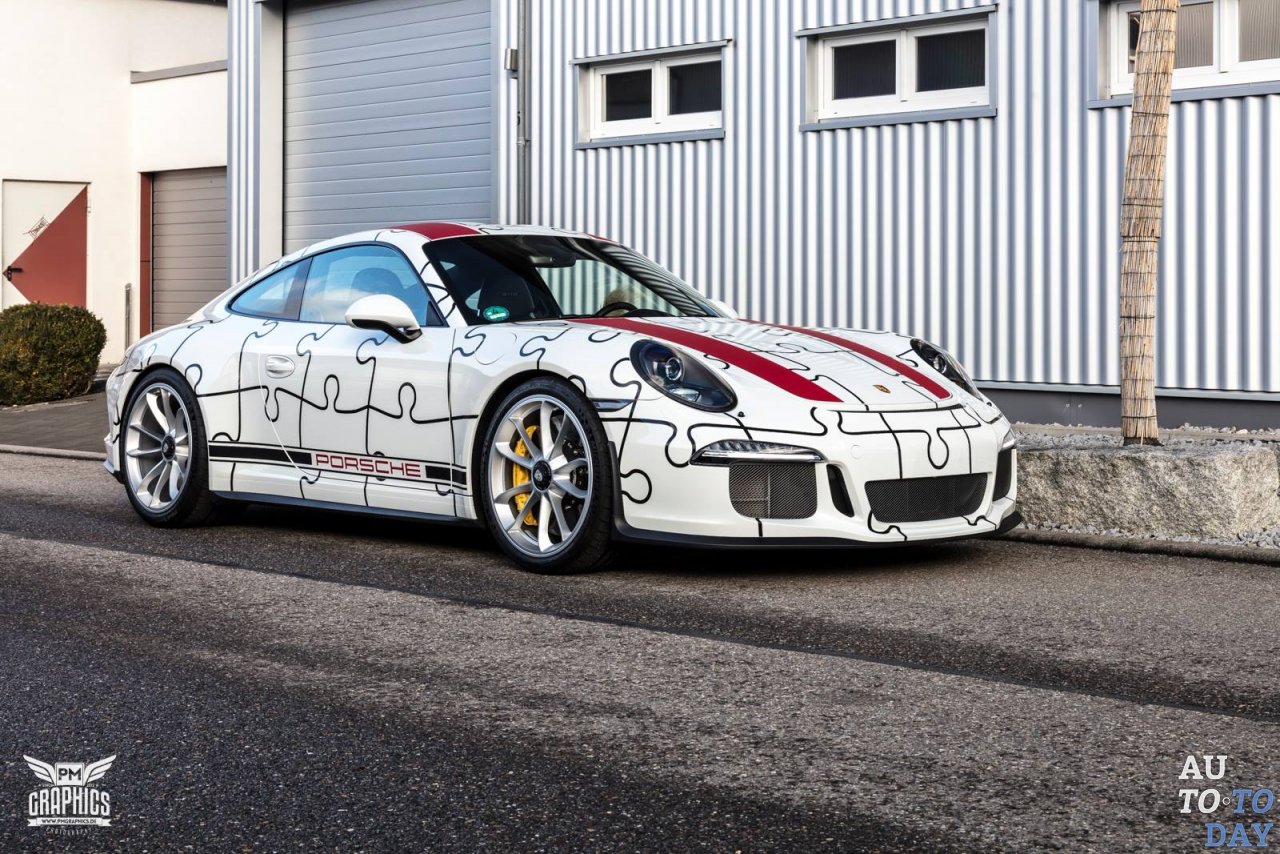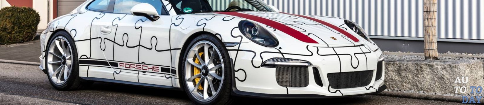 В то время, как множество нынешних владельцев Porsche 911 R пытаются придумать самые разнообразные и необычные варианты оформления своего автомобиля, представленный экстерьер смело выделяется среди остальных, в силу своей эксклюзивности и жажды экспериментов. Пазл, изображенный по всему периметру кузова 911 R, был реализован немецким тюнером Schwaben Folia. Как можно заметить, все элементы пазла идеально соединяются и сохраняют моменты традиционного дизайна – двойные полоски и фирменные наклейки по бокам автомобиля. Таким образом, представленный вариант оформления позволяет не потерять собственную индивидуальность, а также уберечь отличительные черты Porsche 911 R.