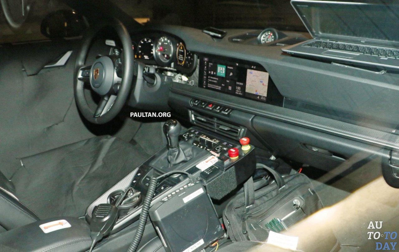 Есть надежда для поклонников ручной коробки передач, также, судя по этому изображению интерьера испытательного мула, показывающего рычаг механической коробки передач. Это не означает, что руководитель продукта полностью против разработки 911 с электроприводом. «Два года назад я бы не сказал. Сегодня я бы не стал категорически это исключать, - сказал Ахлейтнер, намекая на электропривод 911.