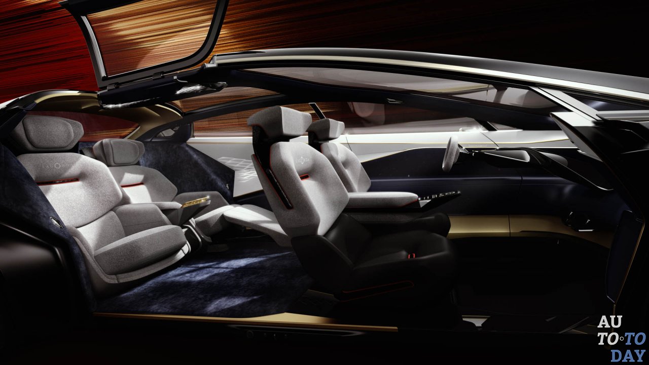 В отделке интерьера дизайнеры использовали огромное количество интересных материалов, в числе которых акценты из углеродного волокна, шелка, керамики и даже шерстяная обивка. Свежий взгляд на британскую роскошь представляет уникальная особенность концепции – наличие поднимающейся секции крыши, которая позволяет пассажирам с легкостью осуществлять посадку на задний ряд и, конечно же, выходить из автомобиля. В это же время рулевое колесо можно просто отодвинуть в сторону и позволить Lagonda Vision самостоятельно управлять машиной с помощью автономных систем.