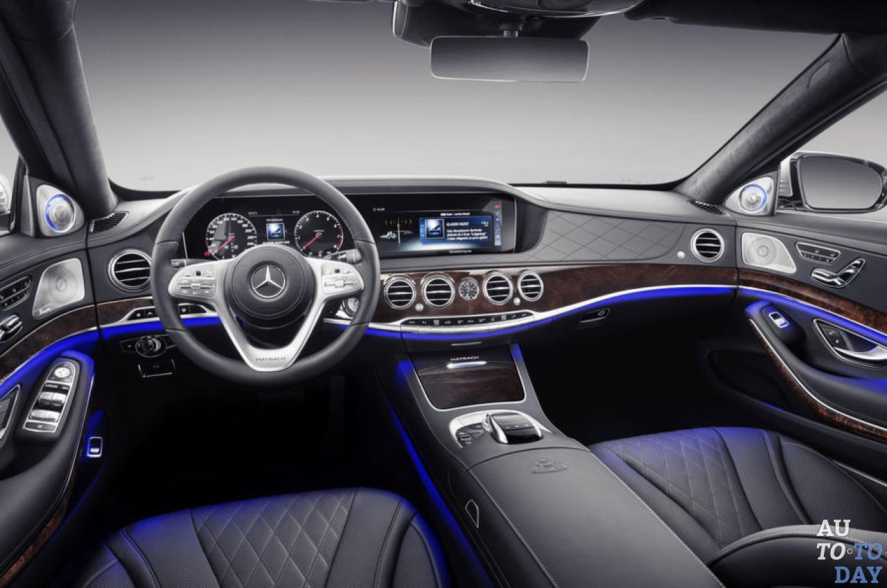 Внутри Mercedes-Maybach S-Class предлагает два варианта отделки: с использованием коричневого и черного оттенков или бежевого с черным, а также на выбор бензиновый двигатель: 4,0-литровый мотор V8 с турбонаддувом, обеспечивающий 458 лошадиных сил, или 6,0-литровый агрегат V12 с турбонаддувом, развивающий 612 лошадиных сил.