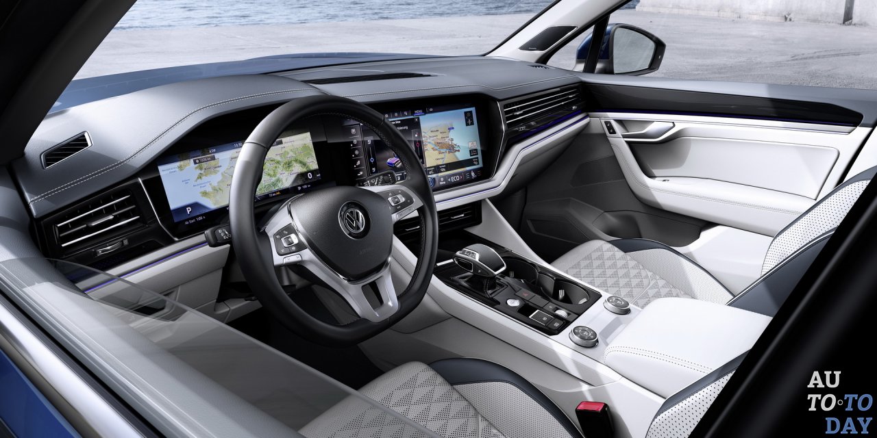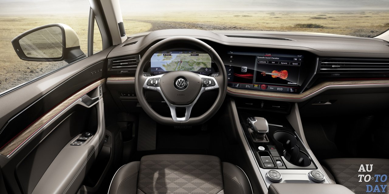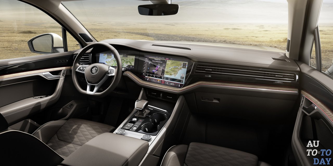 Возможно, самой впечатляющей особенностью нового Touareg является его интерьер, который Volkswagen называет Innovision Cockpit. Теперь на приборной панели имеется 15-дюймовый (!) сенсорный дисплей, объединенный под одной стеклянной поверхностью с 12-дюймовой цифровой приборной панелью. Некоторые переключатели и регуляторы сохраняются для часто используемых функций, но в остальном это полностью переработанный экран.