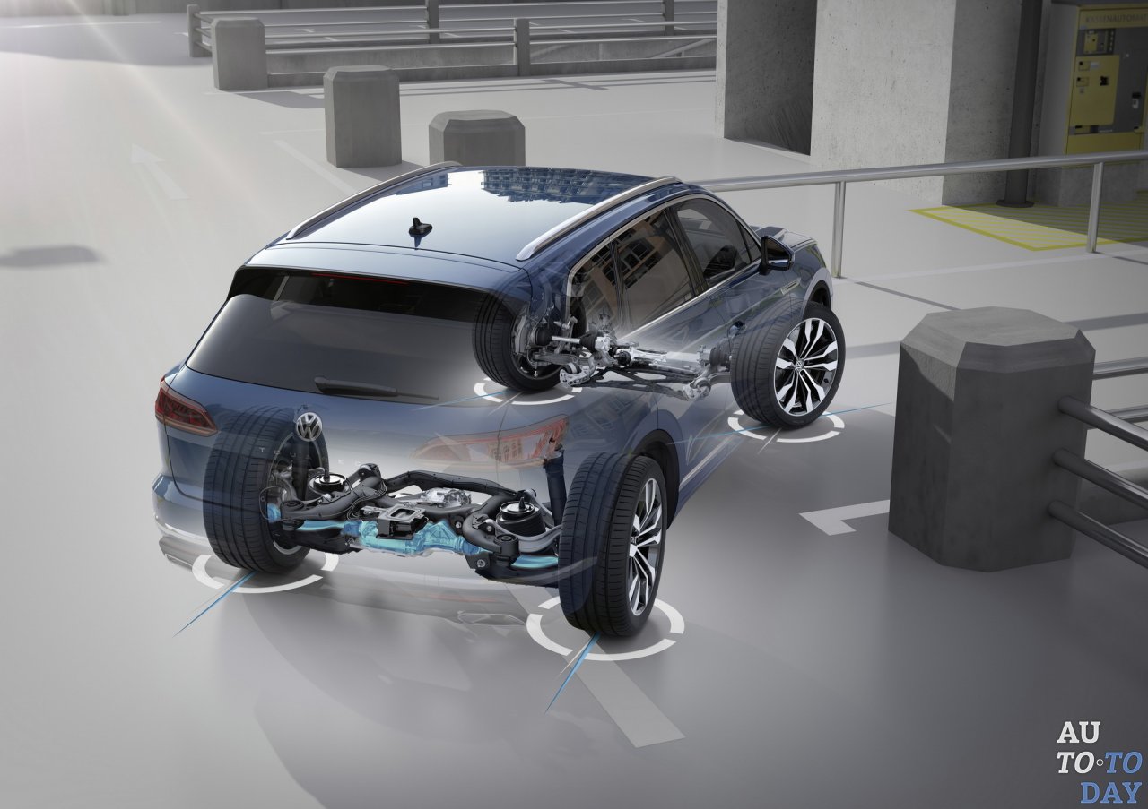 Новый Volkswagen Touareg также оснащен новыми светодиодными матричными фарами, системами безопасности и помощи водителю, такими как автономное экстренное торможение, камера ночного видения и другие.