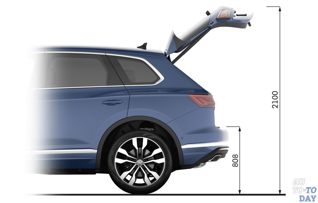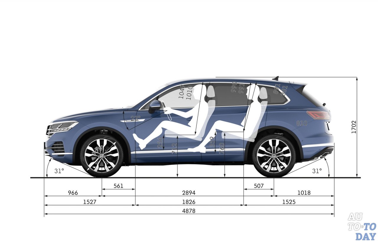Новый флагманский внедорожник Volkswagen увеличился в длину на 77 мм по сравнению с уходящей моделью, и теперь составляет 4878 мм. Ширина составляет 1984 мм (+ 44 мм), а высота - 1702 мм (-7 мм). Новая платформа и корпус также помогают сделать новый Touareg на 106 кг легче, чем его предшественник.