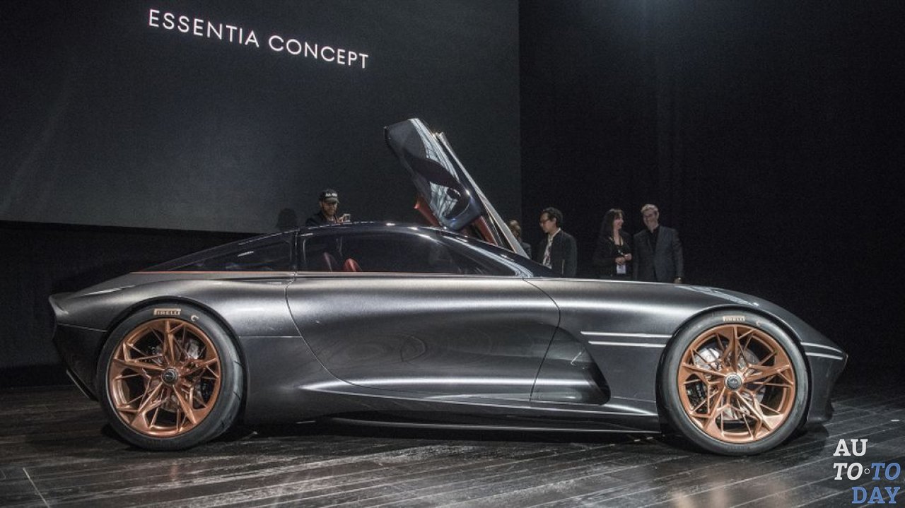 Концептуальное купе воплощает в себе формат GT с длинным носом, низкой крышей и высококлассным интерьером. В Essentia есть монокок из углеродного волокна, а шасси можно увидеть сквозь прозрачный капот. Экстерьер автомобиля формируется с учетом аэродинамических характеристик кузова, от носового конуса до воздушных завес и гигантских функциональных воздуховодов за передними колесами. На корме установлен большой диффузор, а медный цвет колес повторяется вокруг фальшивой радиаторной решетки. Essentia также имеет тонкие лазерные оптические фары, двойная конструкция которых повторяется в заднем освещении. Визуальный пакет дополняют эффектные двери «крылья бабочки», которые открываются с помощью сканера отпечатков пальцев.