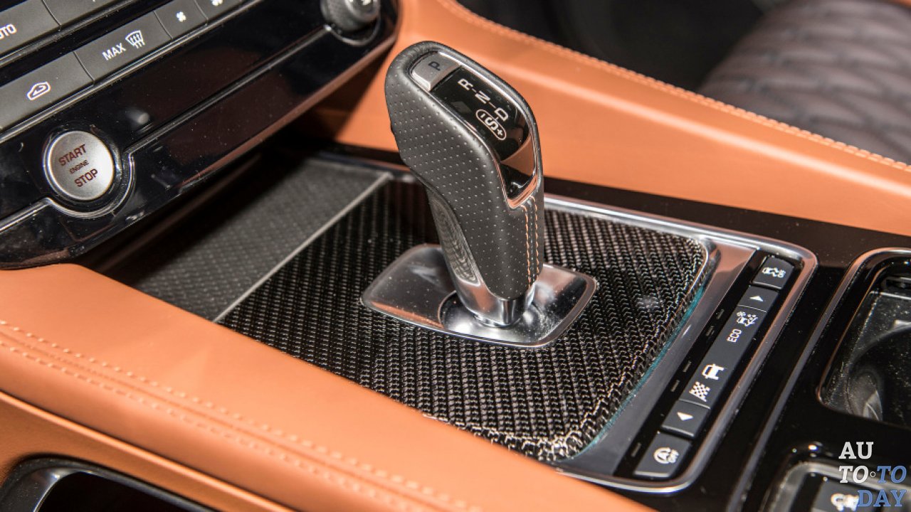 Внутри есть более тонкие и легкие спортивные кресла, обтянутые шикарной стеганой кожей. Сзади также установлены два спортивных сиденья с такими же фиксированными подголовниками, что и спереди. Спортивный переключатель коробки передач, позаимствованный у Jaguar F-Type, пришел на смену стандартной конструкции поворотного рычага. Хотя он по-прежнему занимает слишком много места на центральном трансмиссионном тоннеле.