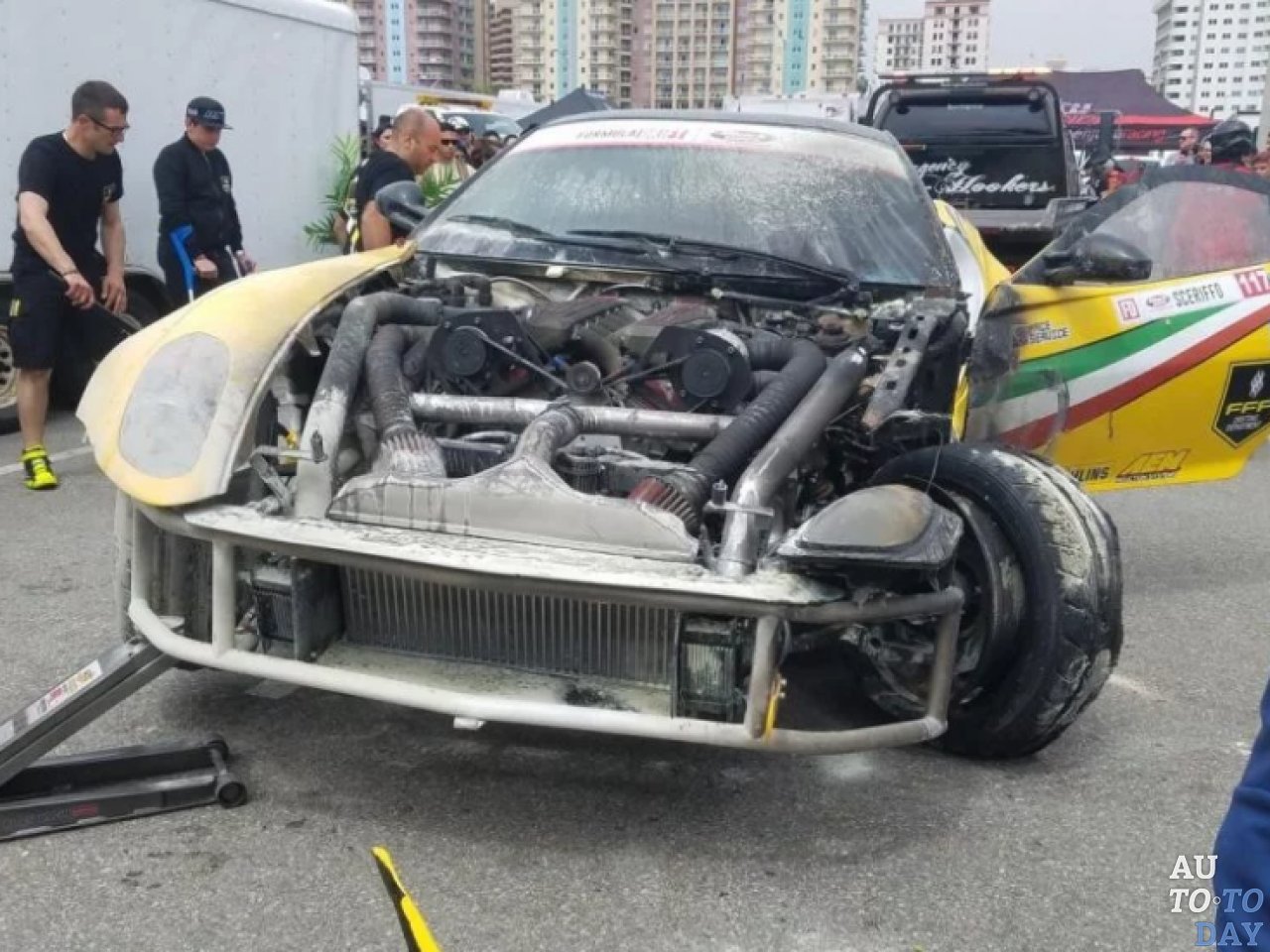 К сожалению, возгорание оказалось сильным и Федерико не смог самостоятельно справиться и только после приезда пожарных удалось потушить огонь. В конечном итоге, автомобиль не смог продолжить заезд. Похоже, Ferrari 599 получит значительные повреждения после первого этапа Formula Drift, состоявшегося накануне в Лонг-Бич, где Федерико «задел» соперника. Отмечается, благодаря представленным снимкам можно рассмотреть состояние модели сразу после инцидента.