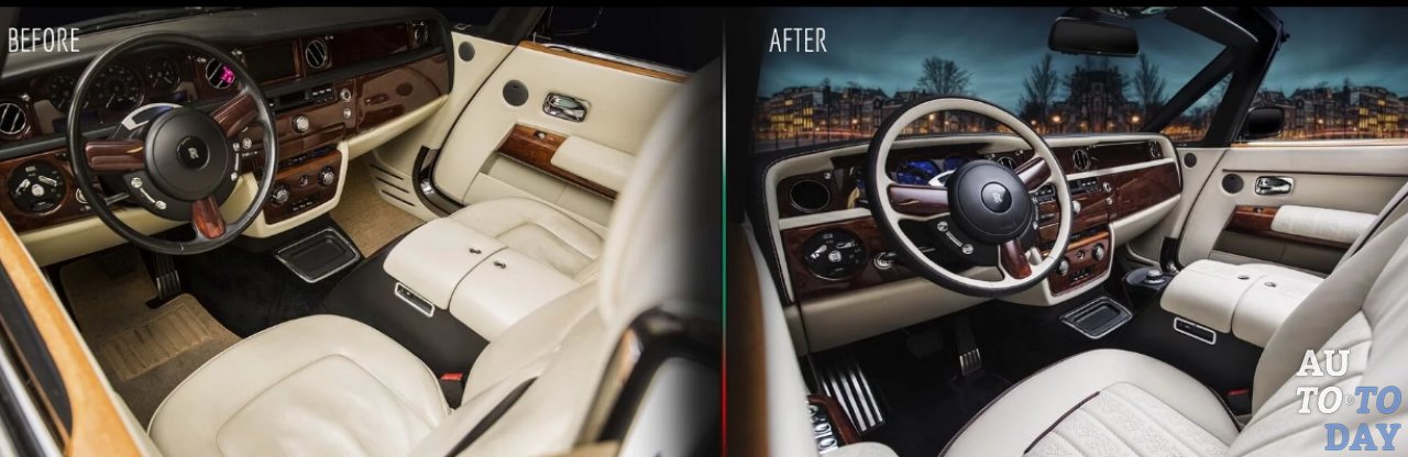 Для восстановления деревянных акцентов (а их в Rolls-Royce Phantom Drophead Coupe достаточно много) специалистам понадобилось 120 часов. 6,75-литровый двигатель, соединенный с шестиступенчатой автоматической коробкой передач остался без изменений.