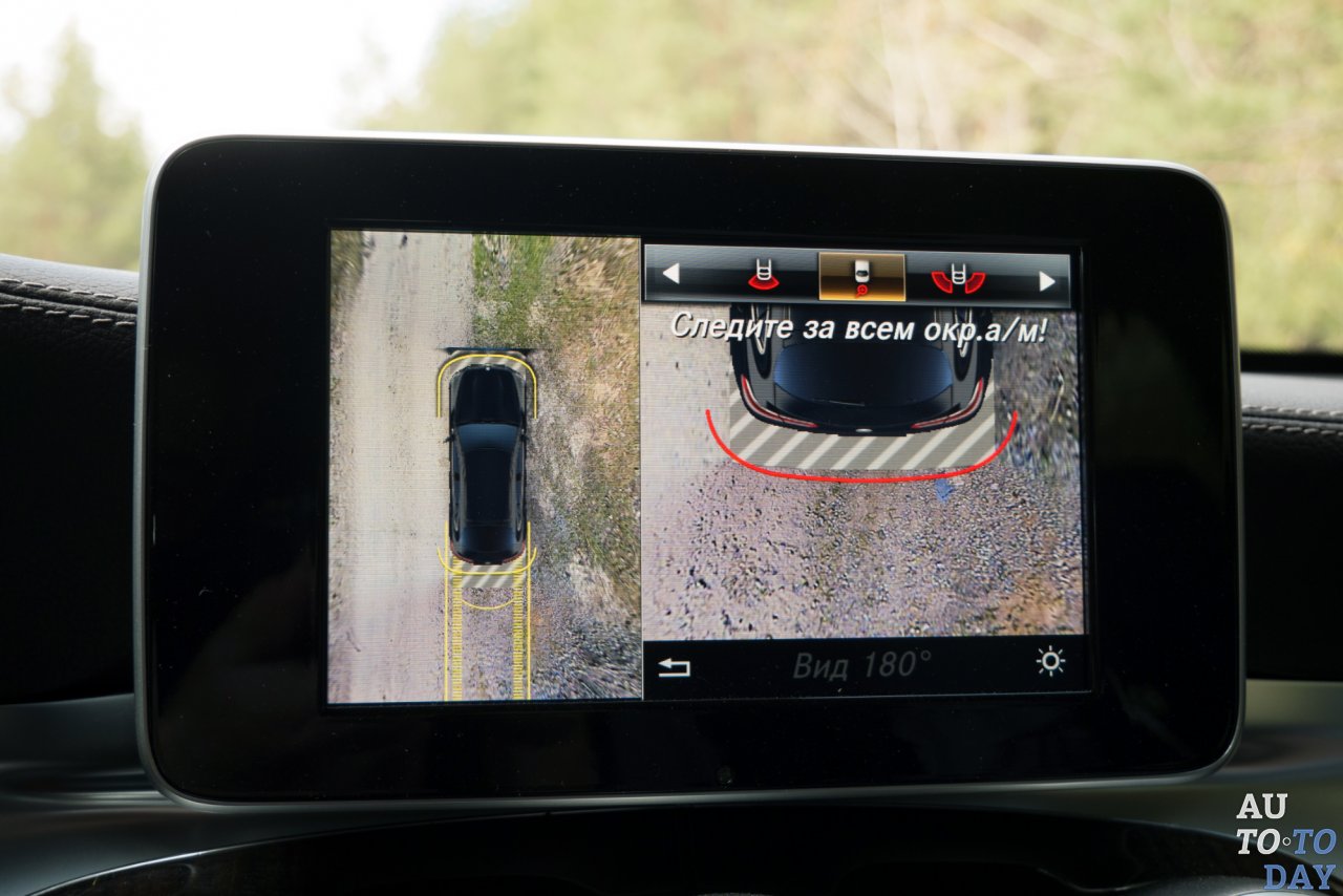 Фирменная мультимедийная система снабжена несенсорным дисплеем. Да, это Mercedes-Benz и он заботится о вашей безопасности. Управлять всеми функциями машины можно с руля, или с многофункционального джойстика, совмещенного с сенсорной панелью, умеющей читать мультижесты и даже ввод цифр. Но поверьте, интереснее всего через Command настраивать характеристики машины в «индивидуальном» режиме и любоваться картинкой с четырех камер кругового обзора.