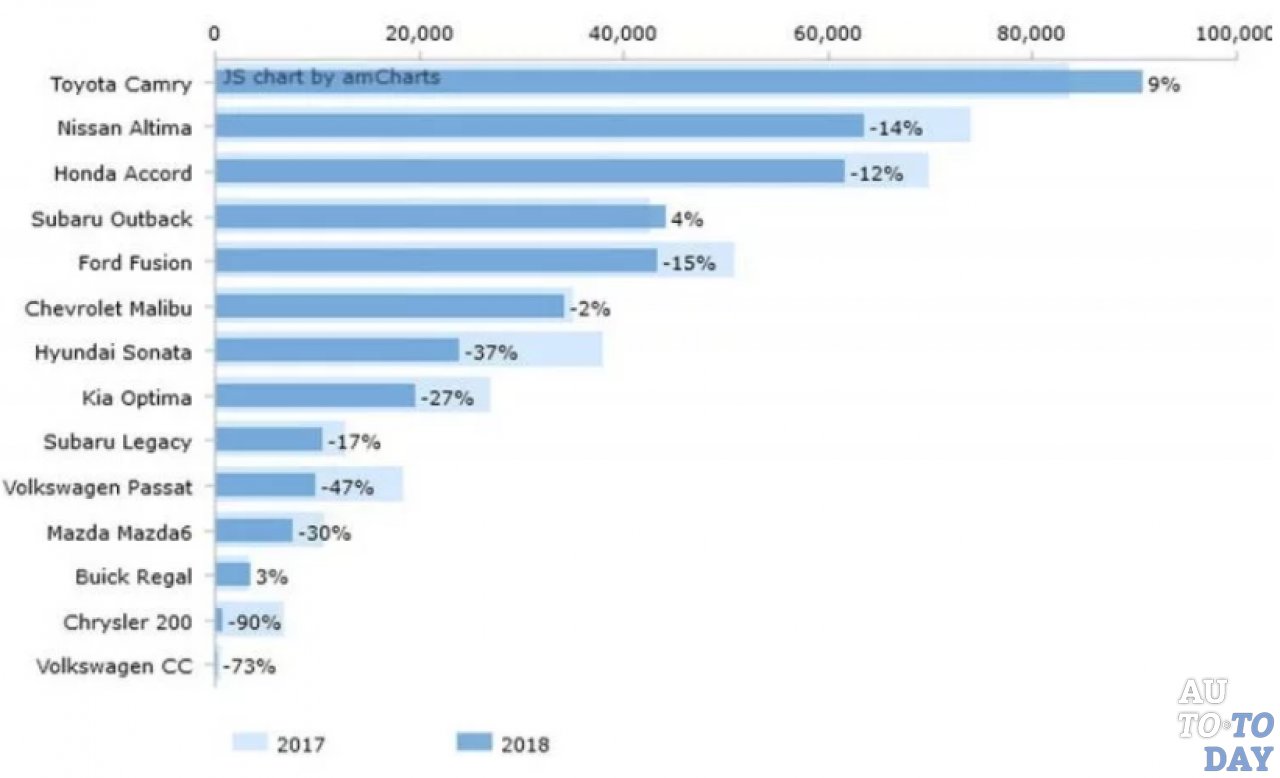Поскольку Ford Fusion постепенно теряет популярность, основное внимание потребителя получают Camry, Accord, Altima и Malibu. По данным Carsalesbase, Camry вместе с Subaru Outback стали единственными транспортными средствами, зарегистрировавшими рост продаж в первом квартале 2018 года. Между тем, модели Accord, Altima и Fusion получили значительное снижение спроса, а Malibu – практически сохранил текущие позиции.