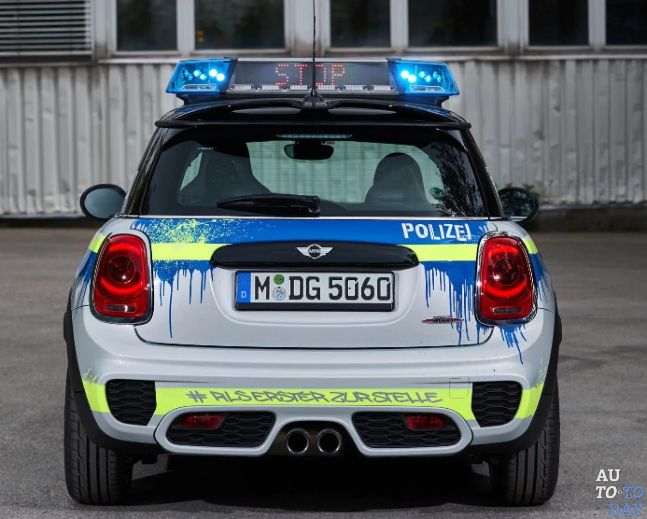 В основе полицейского автомобиля лежит Mini John Cooper Works, оснащенный 2,0-литровым двигателем, способным производить 231 лошадиную силу и 320 Нм крутящего момента. Такие показатели позволяют ему при использовании шестиступенчатой автоматической коробки передач разгоняться 0-100 километров в час примерно за 6,1 секунды и с механическим вариантов – за 6,3 секунды. Специализированная модель имеет типичную для Германии окраску в ярких «городских» оттенках.