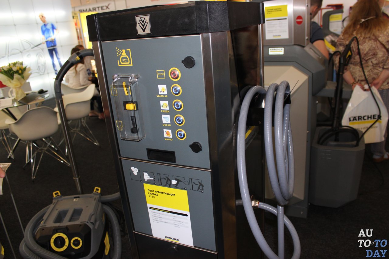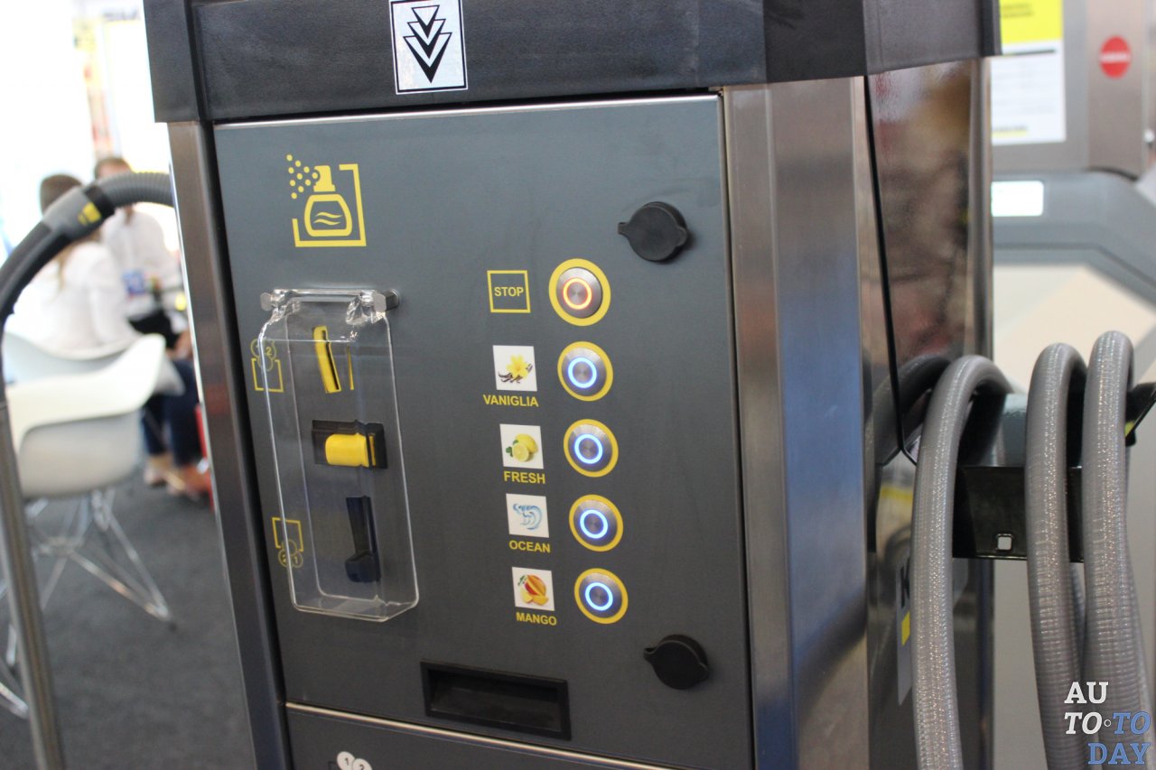 Интересную разработку представил производитель оборудования для автомоек – компания Karcher. Речь идет о стационарном ароматизаторе самообслуживания. Пост внешне похож на станцию подкачки шин. Они могут располагаться на АЗС, мойках самообслуживания и пр. Станция может раздавать четыре разных аромата. Специальным пистолетом спрей рекомендуется наносить под коврики салона в авто.