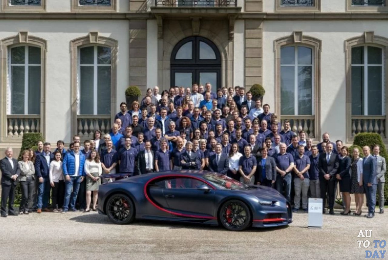 Известная корпорация Bugatti, занимающаяся производством роскошных транспортных средств, отмечает юбилейную модель Chiron, собранную на предприятии в Молсхайме, Эльзас, Франция.