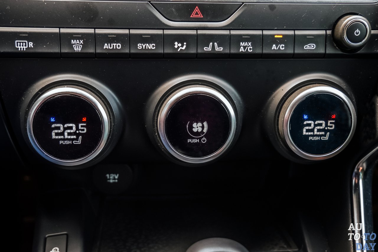 К комфорту также можно отнести и многозадачный блок климат-контроля. При нажатии на каждый из валиков он меняет свою функцию, с регулировки градусов обдува – на подогрев, или на вентиляцию кресла. Рулевое колесо правильно круглой формы, без модных срезов внизу. Пользоваться им удобно, как на стоянке, так и маневрировать на скорости, расположенные на спицах кнопки неплохо распознаются на ощупь благодаря своей «разноуровневости».