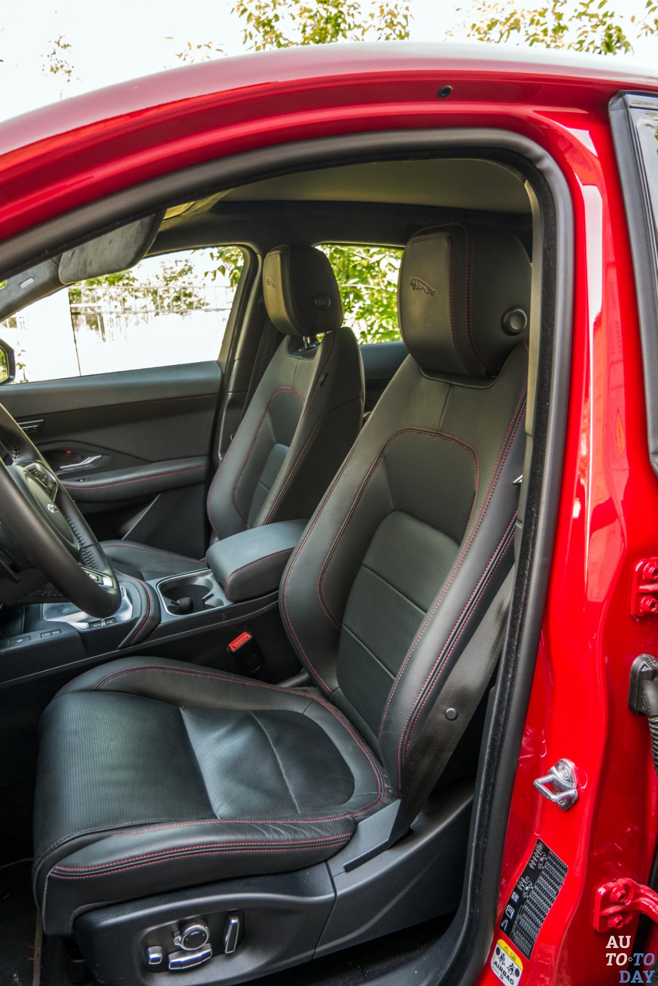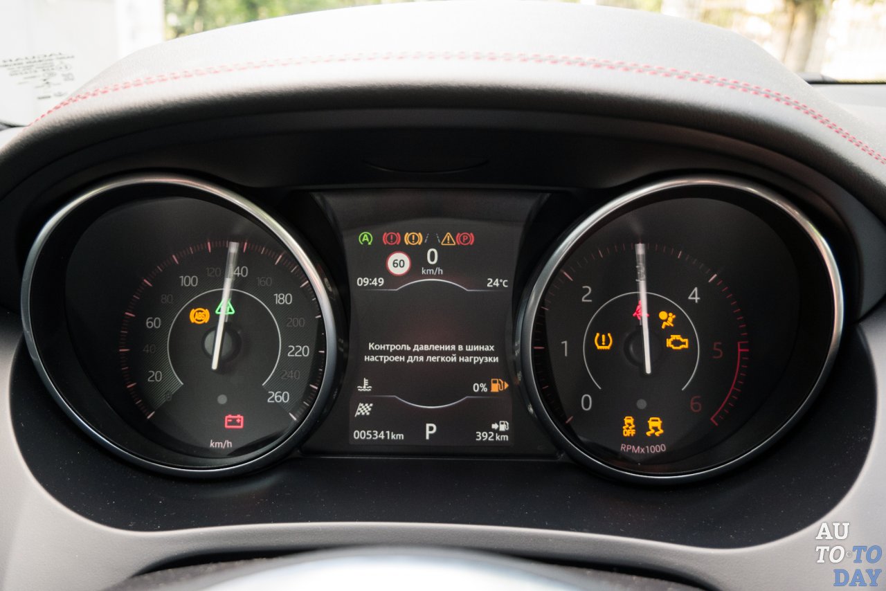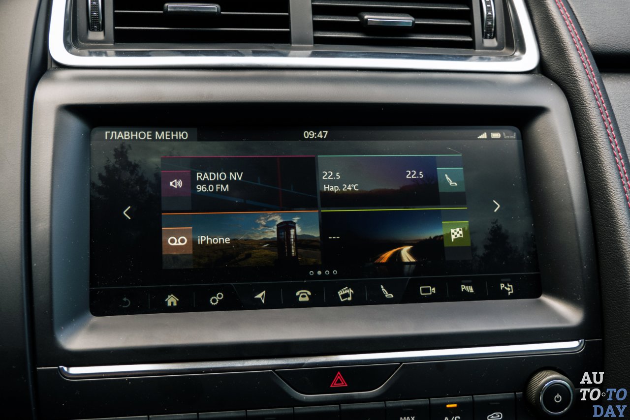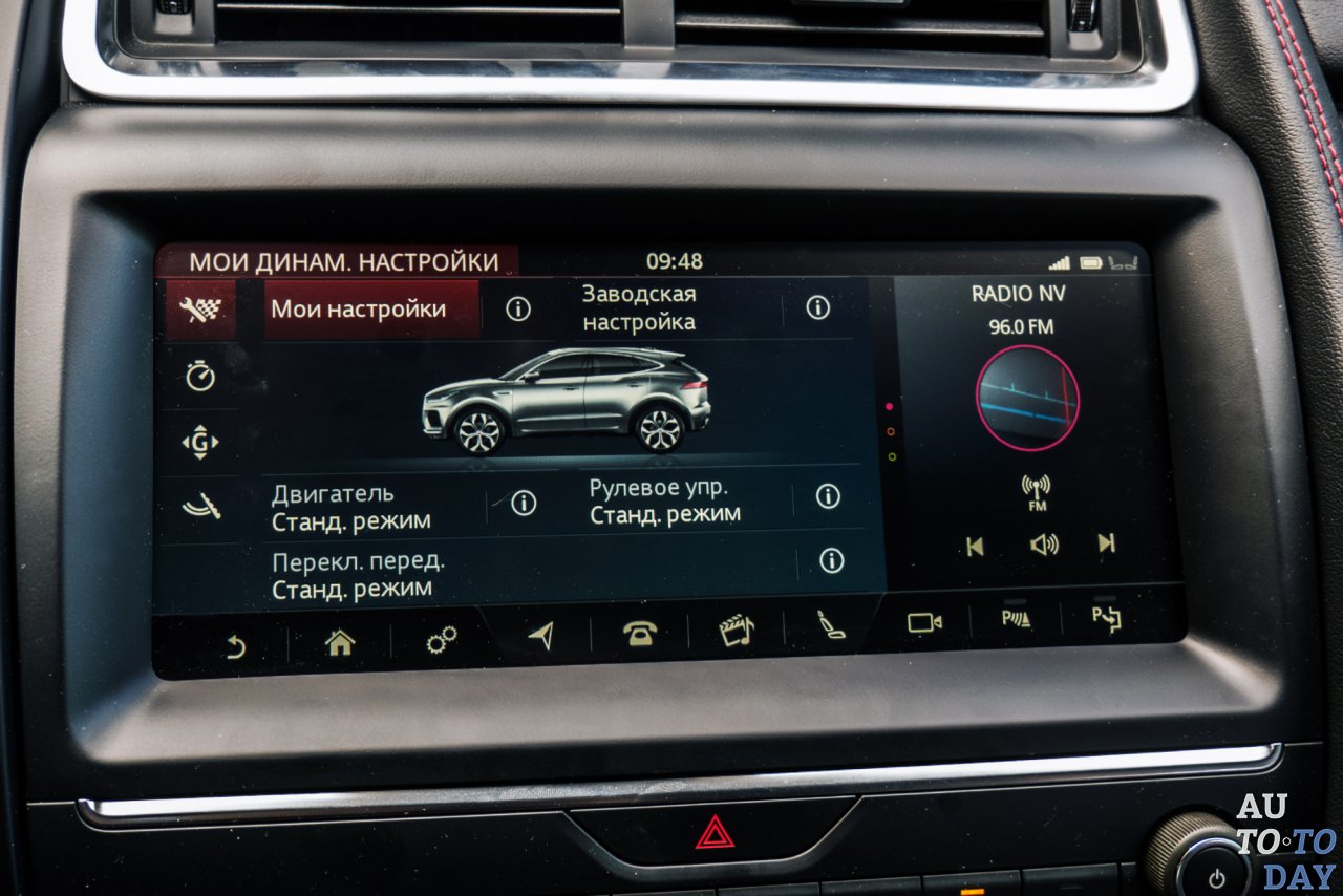 Стиль в данном кроссовере – это полированные алюминиевые вставки на торпедо и дверных картах, матовые кнопки управления подогревами зеркал и пр. Кстати, к их порядку на центральной консоли нужно будет привыкнуть. Мультимедиа с 10-дюймовым сенсорным дисплеем – совсем как на знакомом уже нам Range Rover Velar. По отзывчивости и возможностям системы почти идентичны. Отличная аудиосистема Meridian заставила отказаться на неделю теста от радиостанций и переключиться на настоящее качественное аудио. Кстати, особенно понравилось слушать концертные записи, на которых слышны даже перешептывания музыкантов между партиями.