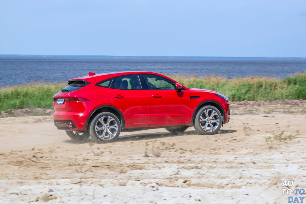 Полный привод активируется автоматически, межколесная муфта BorgWarner за 0,35 секунды подключает заднюю ось. Особых внедорожных режимов нет, есть только универсальный «Снег». С ним рыхлый песок британский кроссовер преодолевал легко и непринужденно. Дальше песка мы не совались, поскольку низкопрофильная резина имела уж очень дорожный рисунок.