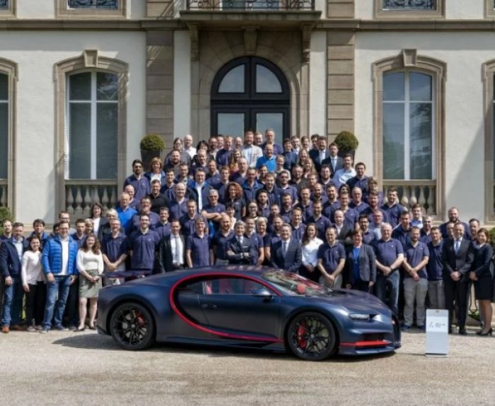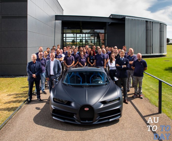 Известная корпорация Bugatti, занимающаяся производством роскошных транспортных средств, отмечает юбилейную модель Chiron, собранную на предприятии в Молсхайме, Эльзас, Франция.