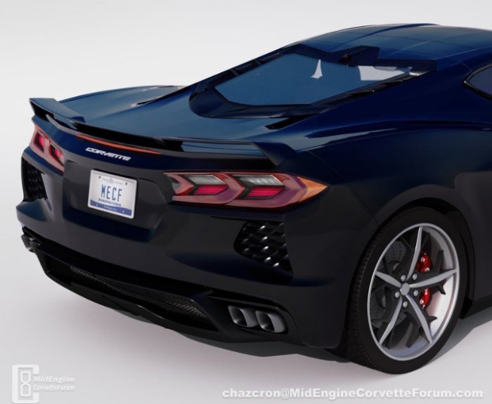 Цифровое изображение, взятое из форума Mid-Engine Corvette Forum, изображает заднюю часть предстоящего Chevrolet C8 Corvette.