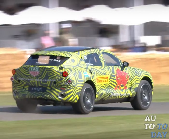 Британский производитель Aston Martin привез прототип DBX на Фестиваль скорости в Гудвуде. Именно там автомобиль публично проехался и очаровал посетителей впечатляющим звучанием двигателя V8.