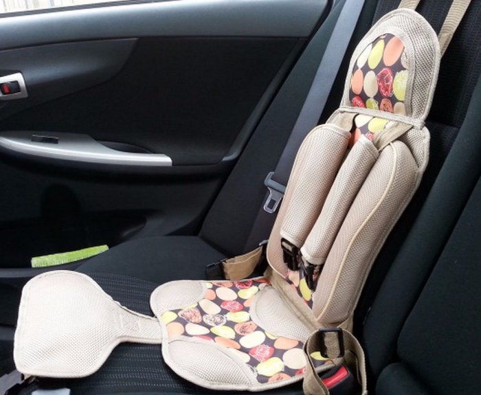 Обычно к сидению крепят большое автокресло, которое с помощью каркаса и ремешков защищает ребенка во время аварии.