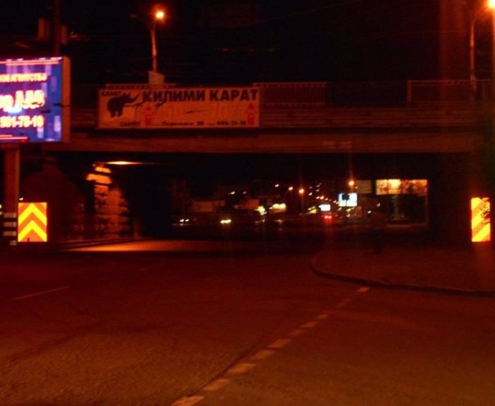 Дабы обезопасить водителей, на съезде с ул. Чорновола на проспект Победы в Киеве поставили обновленные элементы вертикальной дорожной разметки, сообщает «Сегодня». Находятся они на опорах путепровода.