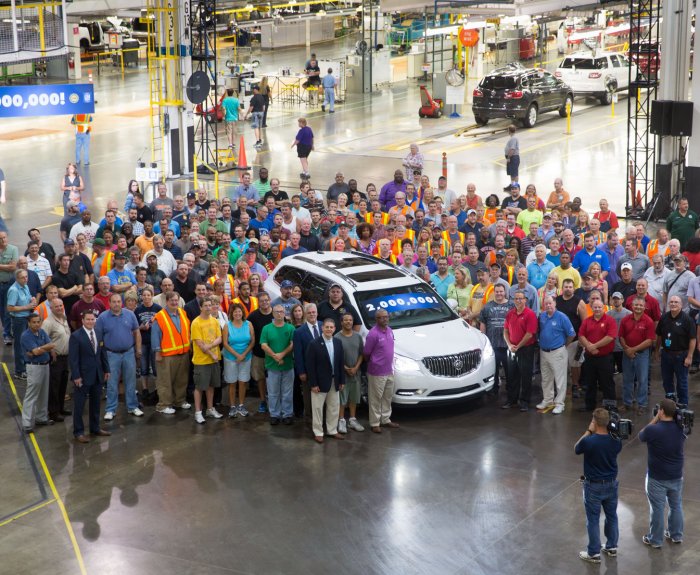На фабрике Lansing Delta Township Assembly Plant в США, что принадлежит корпорации GM, построили 2-хмиллионный автомобиль. Юбилейным моделью стал окрашенный в белый цвет (White Frost Tricoat) Buick Enclave 2016 модельного года.
