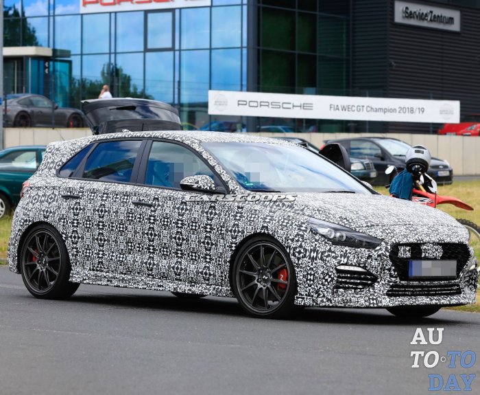 Прототип Hyundai i30 N, покрытый камуфляжной пленкой, включает ряд деталей, отсутствующих на стандартном i30 N. К ним относятся новые легкие колеса с упрощенным дизайном, серая отделка, другой спойлер и боковые юбки, выполненные на заказ. Очевидные ...