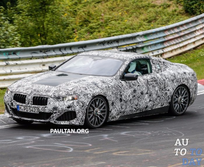 BMW 8-Series снова был пойман шпионами, на этот раз, когда он проходит испытания в Нюрбургринге. Прототип, который мы видим здесь, выполнен в форме купе, который станет одним из двух типов кузова для предстоящей 8-Series наряду с кабриолетом.