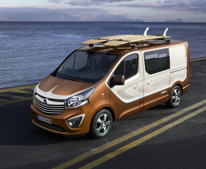 В этом году на Франкфуртском автошоу будет представлена интересная версия Vivaro Surf от компании Opel. Эта модель отличается от обычного минивена наличием креплений для длинномерных грузов (скорее всего доски для серфинга).