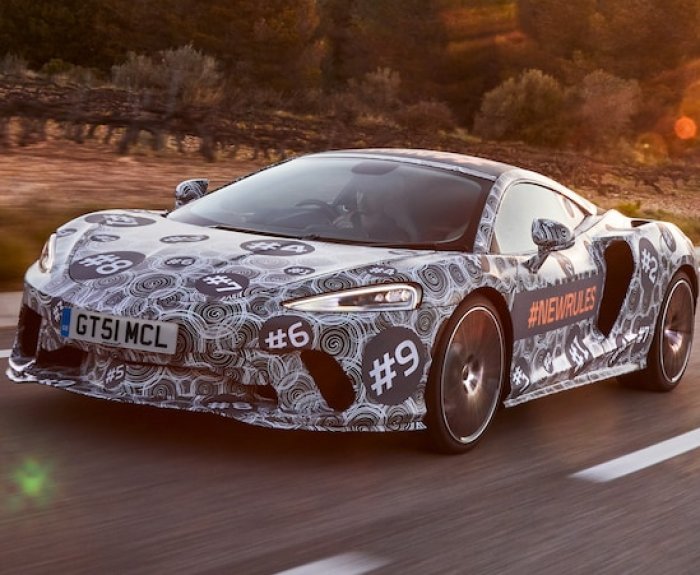 McLaren Grand Tourer, окутанный в камуфляжную пленку, наконец-то лишился громоздких, скрывающих реальную форму боковых и панелей.