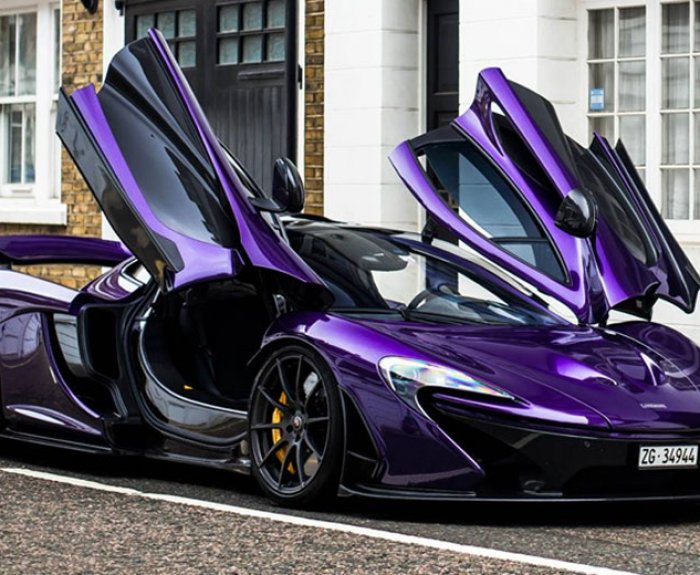 Фиолетовый McLaren P1, сделанный из углеродного волокна только что вышел на улицы Лондона, включая также зеленый, синий, оранжевый и цвет хамелеон P1, только что оставившие технологические центры компании.
