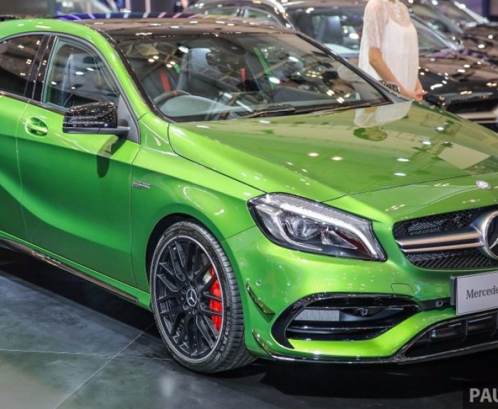 Горячий хэтчбек обычно был заказывают в более традиционных цветах - черном, белом, красном - но эта модель выделяется необычным цветом зеленого минерала эльбаита. Выставочная модель Mercedes AMG A45 на автошоу GIIAS отмечается визуальными опциями - ...