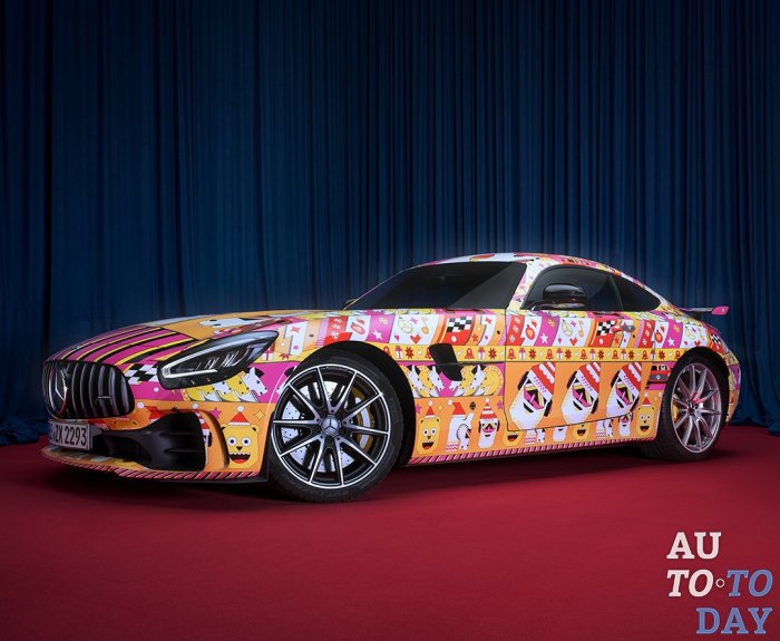 Обе машины были украшены эффектными накидками, имитирующими рождественский свитер. Начиная с AMG GT R, его внешний вид сочетает в себе рождественскую графику с розовыми, оранжевыми и белыми поверхностями.