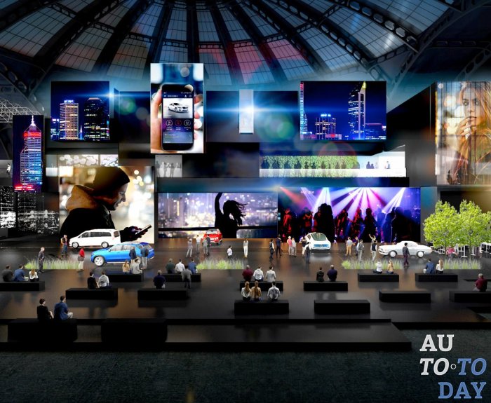 Mercedes-Benz Vision EQS располагается на стенде немецкого производителя и выделяется простым, но современным стилем.