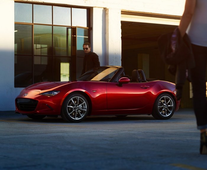 Японский автопроизводитель Mazda уже показала модернизированную спортивную модель MX-5, получившую мягкий складной верх вишневого цвета и огромное количество инноваций.