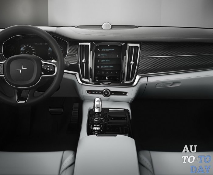 При открытии двери Polestar 1 раскрывается современная кабина с большим количеством оборудования, в основном перенесенного с XC60. Просматривается отделка из углеродного волокна, рулевое колесо, сидения, информационно-развлекательная система и другие ...