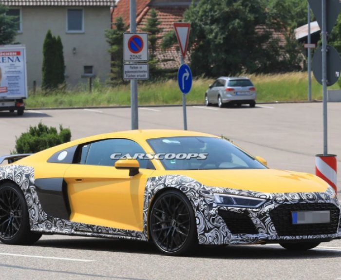 Фото-шпионам удалось запечатлеть модернизированный Audi R8 2019 модельного года, окутанный в яркие цвета и небольшое количество камуфляжа, в основном расположившееся на передней и задней панелях.
