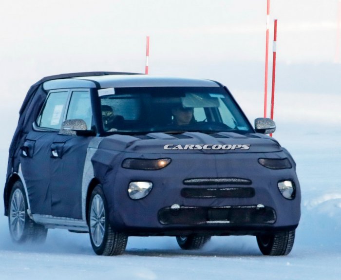 Переработанный электрический Soul все еще проходит испытания и скрывает стилистические особенности под пленкой камуфляжа. Однако это не мешает фото-шпионам заглянуть во внутрь транспортного средства и запечатлеть интерьер.