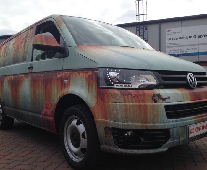 Применение самоклеющейся пленки доказывает, что вы не должны уничтожать свой автомобиль для достижения им вида старого и ржавого.