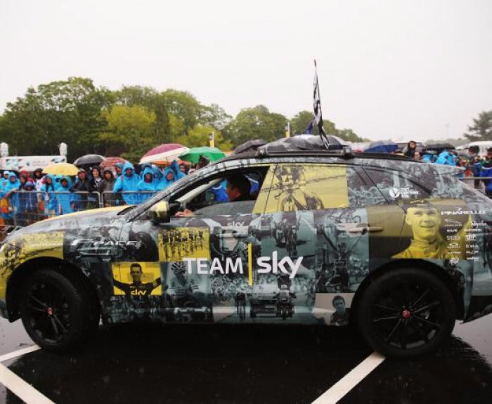 Легендарная британская компания Jaguar представила новые фотографии грядущего внедорожника F-Pace 2016 модельного года в чемпионской ливрее, посвящённой победе британской команды Team Sky в велогонке "Тур де Франс" 2015 года.