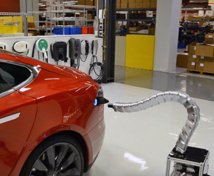 Вы паркуете свой автомобиль, открываете порт сзади, и змея точно соединяет аккумуляторные батареи с зарядным устройством.